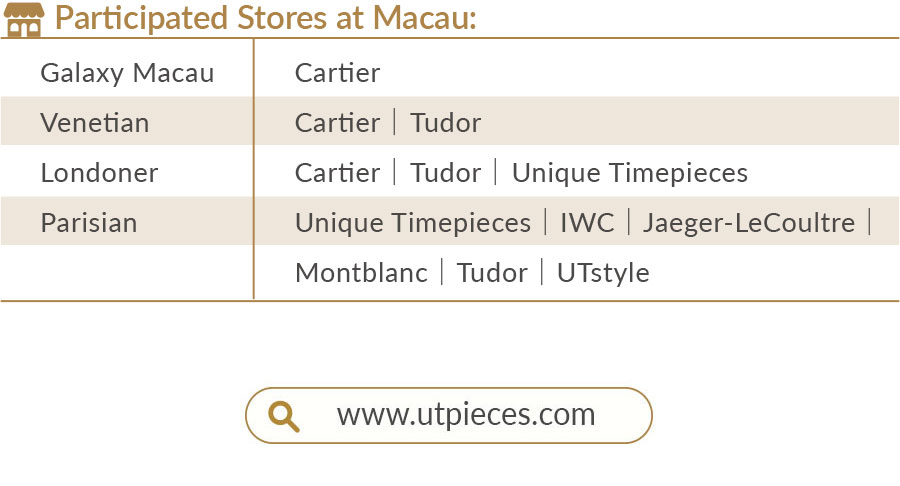 - The offer is applicable to purchase of timepieces, jewelries and sunglasses, which is inapplicable to straps, maintenance services, hot items and designated collections.