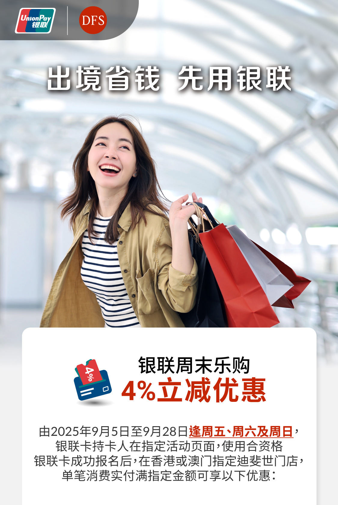 - 实际店内可支持的银联支付方式以DFS店员告知为准。