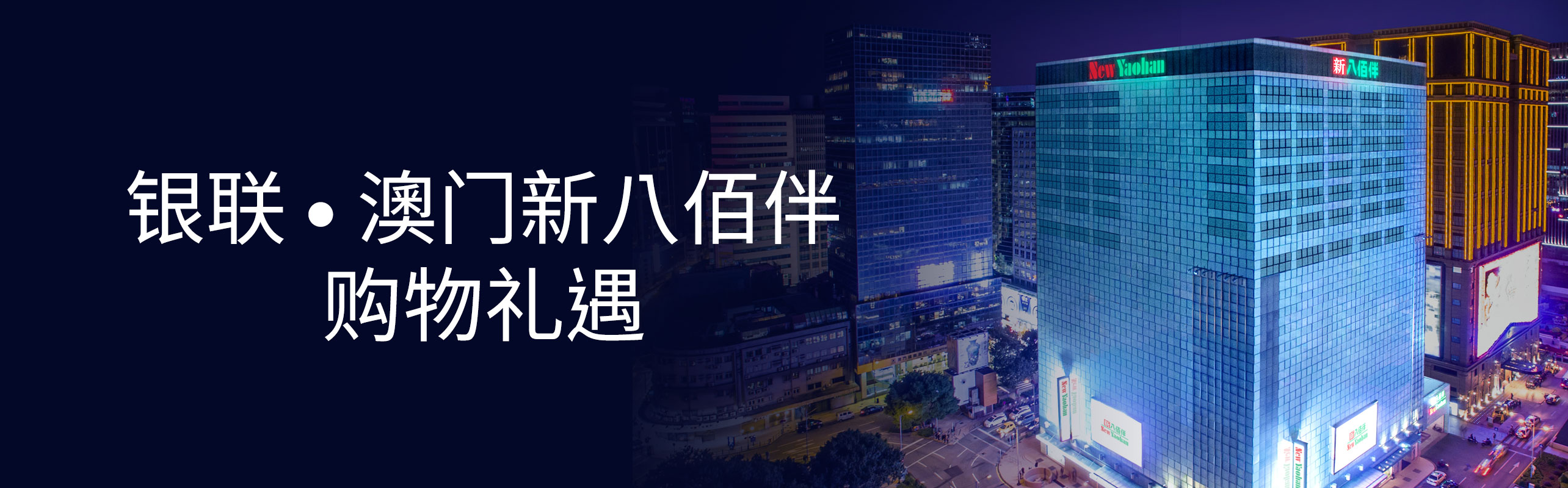 - 推广期间,持卡人于指定连结成功报名后,即可凭已登记之银联卡在澳门地区新八佰伴(南湾店)、NY8新八佰伴(上葡京店)及儿童世界(星皓广场店) 尊享以下优惠。持卡人在云闪付成功报名后,凭银联手机Pay (包括Apple Pay, Huawei Pay等) 及银联二维码消费满额即享以下优惠,