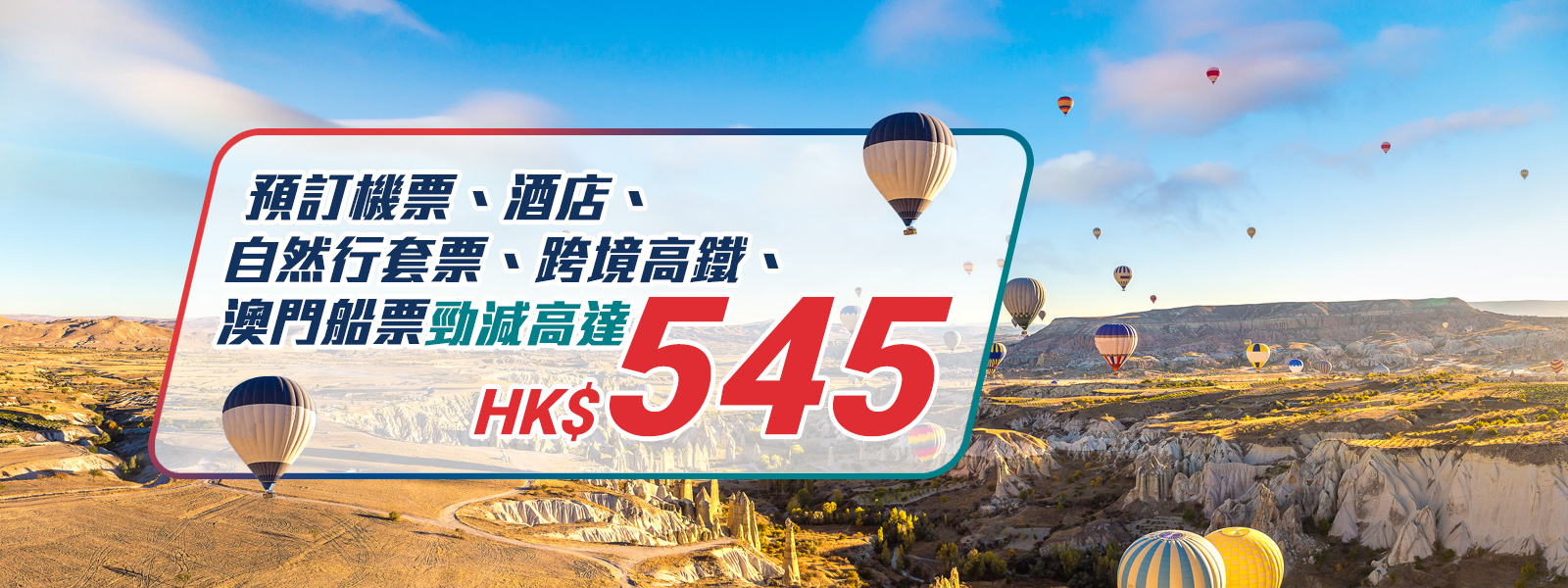 • 指定推廣一:以合資格信用卡或二維碼訂購單程/來回機票(不包括「多個目的地」),單一淨額滿HK$1,800並輸入【UP120T】,可享HK$120即時折扣。 • 指定推廣二:以合資格信用卡或二維碼預訂本地或海外酒店住宿(預付產品),單一淨額滿HK$1,800並輸入【UP120H】,可享HK$120即時折扣。 • 指定推廣三:以合資格信用卡或二維碼預訂自由行套票,單一淨額滿HK$3,500並輸入【UP250P】,可享HK$250即時折扣。 • 指定推廣四:以合資格信用卡或二維碼預訂香港西九龍站跨境高鐵票,單一訂單滿$400並輸入【UP30J】,可享HK$30即時折扣。 • 指定推廣五:以合資格信用卡或二維碼訂購澳門船票,單一淨額滿HK$300並輸入【UP25F】,可享HK$25即時折扣。 - 單一簽賬金額以該產品淨額計算,不包括稅項及燃油附加費。